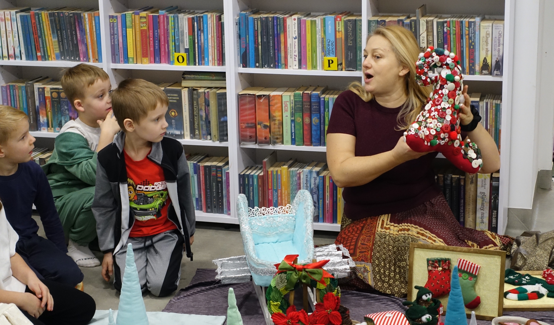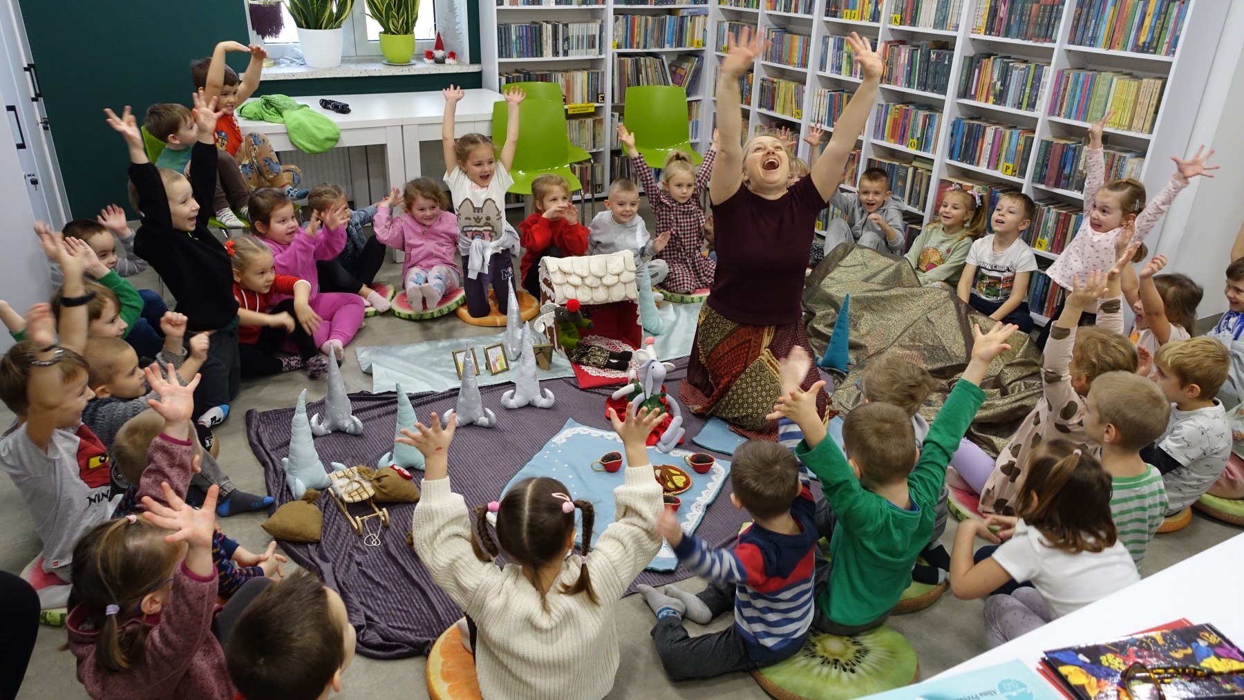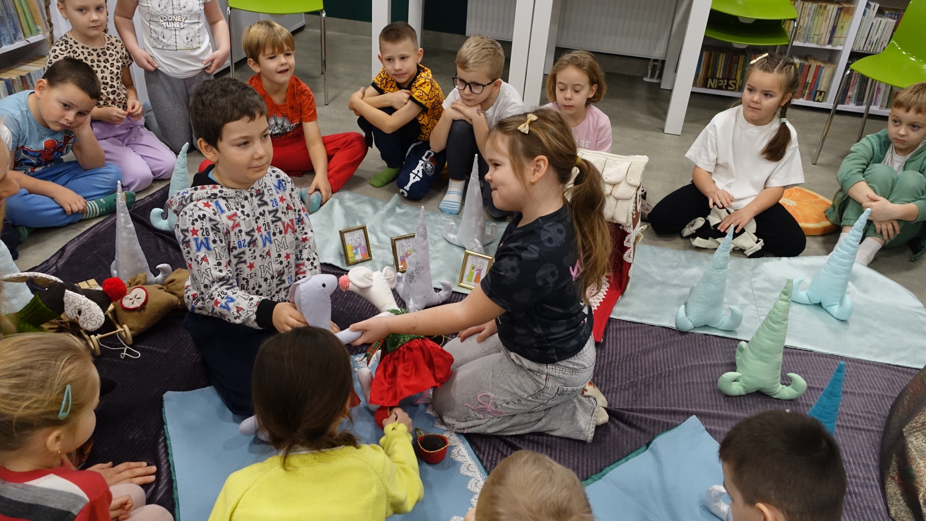 W naszej bibliotece, już po raz kolejny odbyło się wyjątkowe spotkanie z panią Aliną Przydatek – autorką książek dla dzieci oraz twórczynią unikatowych, własnoręcznie szytych scenografii. Pani Alina przeprowadziła dwa warsztaty: pierwszy dla klasy „0”, a drugi dla przedszkolaków z grup III i IV. Podczas zajęć dzieci zostały przeniesione do niezwykłego świata, który autorka stworzyła w swoich książkach. Barwne dekoracje, ręcznie wykonane rekwizyty oraz pełna ciepła opowieść sprawiły, że najmłodsi uczestnicy mogli poczuć się, jakby znaleźli się w samym centrum niezwykłej przygody.Dzieci miały możliwość wcielania się w bohaterów znanych z twórczości pani Aliny. Pod jej czujnym okiem odgrywały scenki.Dziękujemy pani Alinie Przydatek KiciNici za magiczny czas spędzony z dziećmi oraz za pokazanie, jak pięknie literaturę można połączyć z zabawą i teatrem.Dziękujemy także paniom oraz uczniom za odwiedzenie biblioteki i aktywny udział w warsztatach — to dzięki Wam to spotkanie miało tak wyjątkową atmosferę.